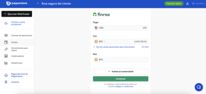 Pepperstone permite depositar mediante criptomonedas o stablecoins. Es ideal para traders que ya operan con cripto o buscan evitar intermediarios bancarios.