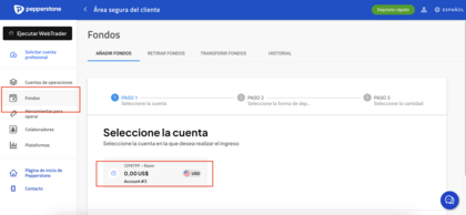 Seleccionar apartado Fondos y seleccionar tu cuenta - Elige “PayPal” como método de depósito.