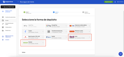 - Selecciona “Skrill” o “Neteller” en el área de cliente.