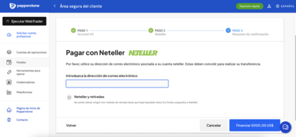 Neteller y Skrill como forma de depósito en Pepperstone - Indica el monto a depositar.