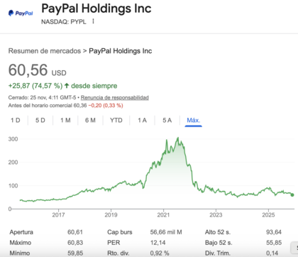 La Fintech por excelencia que revolucionó las transacciones en línea, PayPal, enfrenta un desafío: reencender su ritmo de crecimiento. Con más de 430 millones de cuentas activas a nivel mundial, su base de usuarios es inmensa, y su dominio en el comercio electrónico sigue siendo relevante. Si bien el precio de su acción se ha mantenido en un rango volátil, la intención de búsqueda detrás de PYPL se centra en su potencial de recuperación (turnaround).