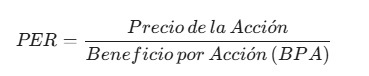 El PER (Price-to-Earnings Ratio) te dice cuántos años de utilidades estás pagando al comprar la acción. Para calcular PER accion usamos la siguiente fórmula: