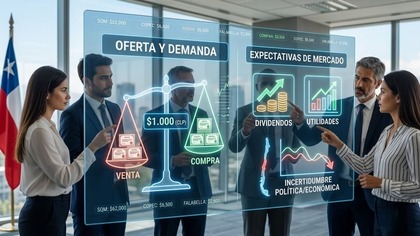 Sin embargo, detrás de esa oferta y demanda hay expectativas. Si el mercado cree que la empresa va a repartir buenos dividendos o utilidades, el precio sube porque todos quieren un pedazo. Si hay incertidumbre política o económica en Chile, el precio baja porque el riesgo asusta a los compradores.