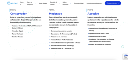 La corredora ofrece acceso a instrumentos clásicos del mercado chileno y, en algunos casos, internacionales a través del grupo financiero Tanner.