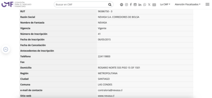 Nevasa está fiscalizada por la Comisión para el Mercado Financiero (CMF), lo que garantiza el cumplimiento de las exigencias regulatorias de patrimonio mínimo, custodia y transparencia.