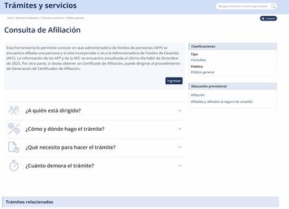 El trámite está dirigido a personas afiliadas a una AFP, y también puede consultarse para un tercero si se cuenta con su identificación básica (según la guía pública del trámite).