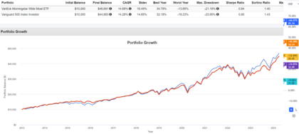 Para el ETF MOAT, este es el desempeño desde su inicio, incluidos dividendos VS el SP500: