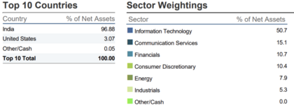 Riesgo de Tipo de Cambio: Que podría afectar los retornos porque, aunque la divisa base del ETF es USD, las empresas en cartera cotizan en INR.