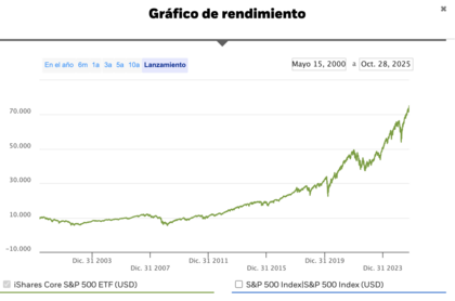 - Diversificación: 500 acciones líderes de EE. UU. (Microsoft, Apple, Nvidia, Alphabet, Amazon).