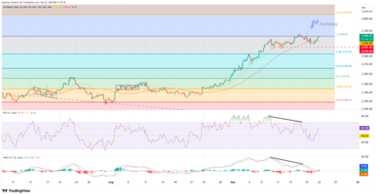 - Indicadores de momentum: el RSI sube hasta 65, reflejando fortaleza sin entrar aún en sobrecompra. El MACD ha cruzado al alza sobre la línea de señal, reforzando el sesgo alcista.