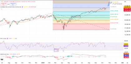Una ruptura sostenida por debajo de la media móvil podría confirmar una corrección bajista hacia el soporte de 23,305, con extensión potencial hasta 21,905 si la presión vendedora se intensifica. En contraste, una recuperación por encima de 25,090 abriría espacio para una nueva ola de compras con objetivo en 27,365, especialmente si la fortaleza del sector tecnológico se mantiene.