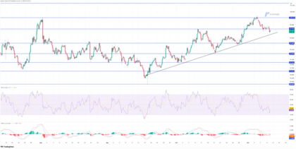 El RSI se mantiene en 39, acercándose a la zona de sobreventa, lo que sugiere que el impulso bajista podría estar agotándose. Sin embargo, el MACD conserva un cruce bajista con histogramas negativos, confirmando que el sesgo a corto plazo sigue siendo débil.