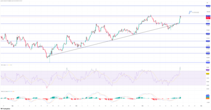 - El MACD muestra un fuerte impulso alcista con histogramas en expansión, reflejando presión compradora intensa.