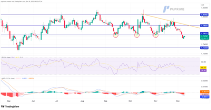 Niveles de resistencia: 1.7805, 1.8050 Niveles de soporte: 1.7325, 1.7060
