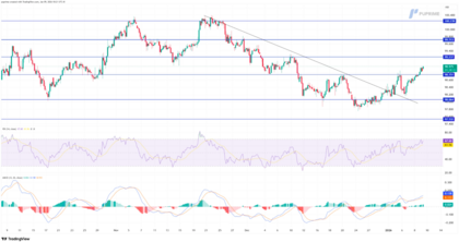 Los indicadores de impulso respaldan esta fase de estabilización. El RSI se sitúa en la zona de 60-65, lo que refleja un fortalecimiento del ímpetu comprador sin entrar todavía en condiciones de sobrecompra. Esto sugiere que existe espacio para una extensión del rebote antes de encontrar fatiga técnica. Por su parte, el MACD ha confirmado un cruce alcista y su histograma se expande en terreno positivo, validando el interés de los compradores en defender los niveles actuales.