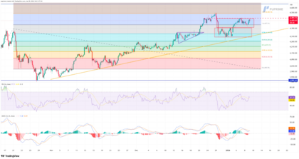 En el corto plazo, el precio oscila en un rango entre 4,310 y 4,495 dólares. El indicador RSI se sitúa en torno a 55, reflejando un impulso neutral que carece de la fuerza necesaria para una ruptura inmediata. El MACD muestra barras del histograma cercanas a la línea de cero, confirmando que, aunque los compradores mantienen el control estructural, la convicción alcista se ha enfriado temporalmente. Se requiere una ruptura clara de los 4,500 para reanudar el camino hacia nuevos máximos históricos.